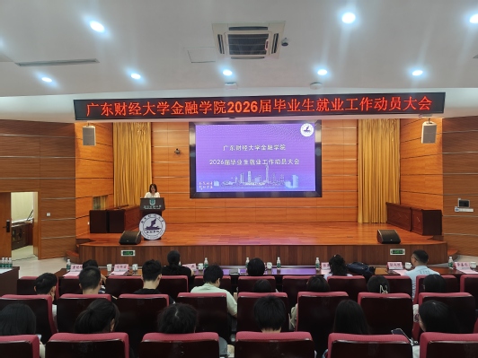 为切实做好2026 届毕业生就业工作,帮助同学们明确就业方向、树立正确就业观念,11 月 2 日,金融学院召开 2026 届毕业生就业工作动员大会。金融学院党委书记黄洁娜、党委副书记董艳玲、副院长张国俊、论文指导老师代表刁怀宏、毕业班班主任代表姚燕、校友代表李嘉乐、2026届辅导员及全体本科毕业生出席会议。会议由副书记董艳玲主持。本次大会聚焦就业形势分析、职业方向规划和就业观念引导,通过多环节、多角度的深入交流,为毕业生迎接求职季做好充分准备。
