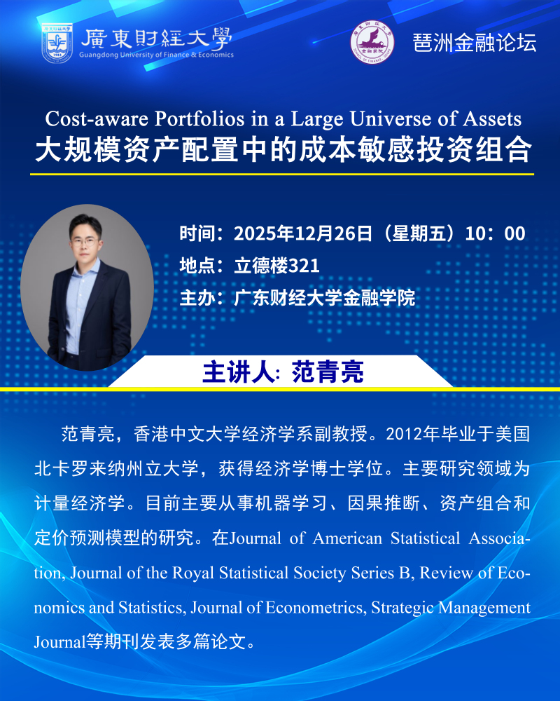 【琶洲金融论坛预告】Cost-aware Portfolios in a Large Universe of Assets(大规模资产配置中的成本敏感投资组合)