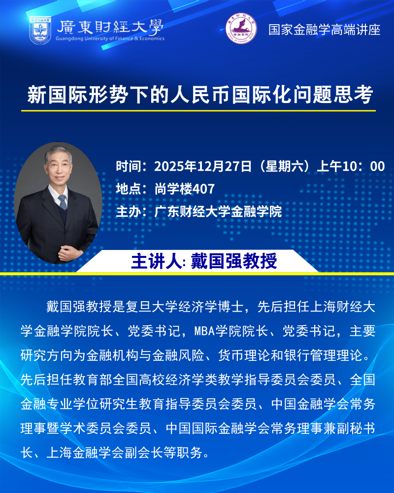 【国家金融学高端讲座预告】新国际形势下的人民币国际化问题思考