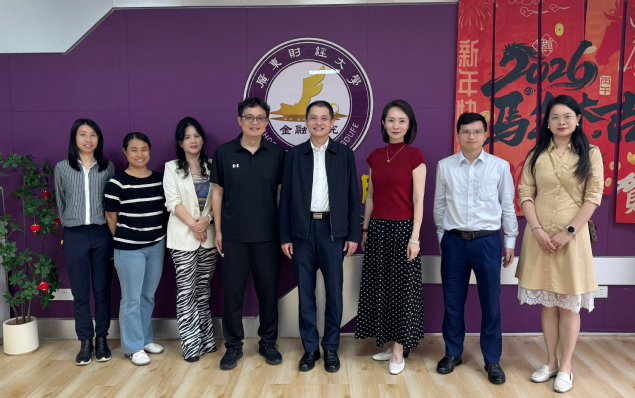 2026年4月8日,交通银行广东省分行党办/办公室/宣传部副主任兼团委书记柳林、养老金融中心科长黄晓锋等一行到访金融学院,双方围绕深化校企合作展开座谈交流。金融学院院长蔡卫星、副院长张国俊、党委副书记董艳玲、保险系主任赵海珠、保险系副主任郑倩昀等参与座谈。