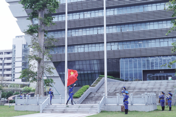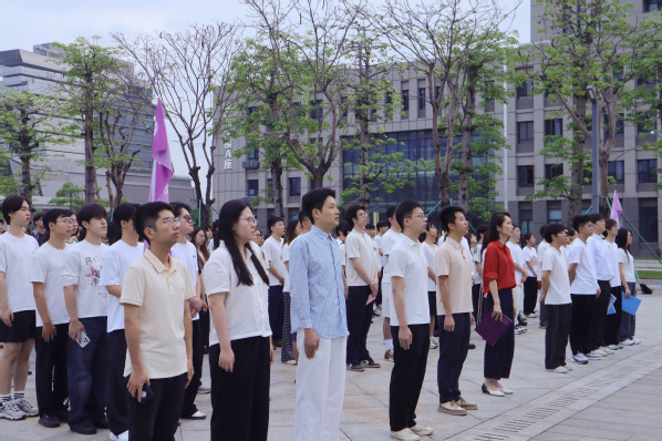 为厚植家国情怀,传承红色基因,激励金融学子坚定理想信念、勇担时代重任,2026年4月13日早晨,金融学院在广州、佛山两校区同步举行庄严的升国旗仪式。学院党委副书记董艳玲、全体辅导员及全体本科生参加活动,全体师生精神昂扬、队列整齐,充分展现新时代金融学子积极进取、奋发向上的良好精神风貌。