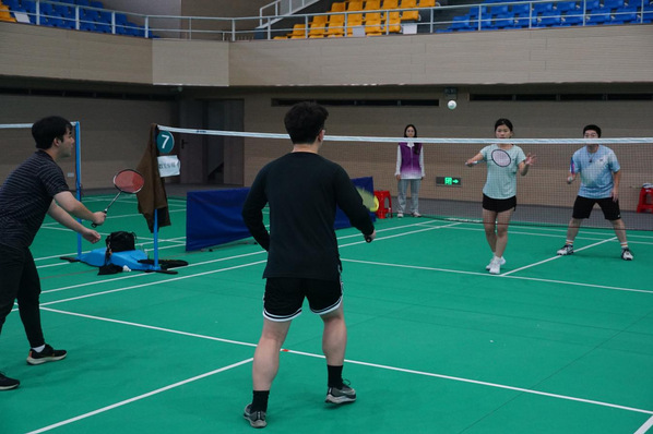 比赛号角吹响,参赛选手精神抖擞、全力以赴。学生与教师搭档默契,校友组合活力十足——跃起扣杀势如破竹,网前轻吊巧夺先机。得分时的击掌庆祝,失误后的鼓励打气,每一次攻防对决都是球技与团队精神的完美诠释,场内场外激情四溢、暖意融融。
