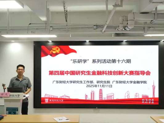 为帮助我校研究生提升金融科技领域创新实践能力,增强赛事竞争力,11月11日下午,广东财经大学研究生工作部、研究生院与金融学院在33栋西塔“一站式”研究生社区337学术报告厅联合举办“乐研学”系列活动第十六期一第四届中国研究生金融科技创新大赛指导会。本次活动特邀金融学院金融科技系系主任胡凡副教授担任主讲人,各学院研究生共计70余人参加。