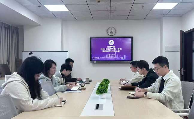 近日,金融学院召开2025-2026学年度第一学期第四次学生工作例会。会议围绕学生思想动态关注、专项工作创新、学院中心建设及榜样学习等内容展开深入研讨,并就下一步工作方向达成共识。会议由学院党委副书记董艳玲主持,全体学工成员参加。