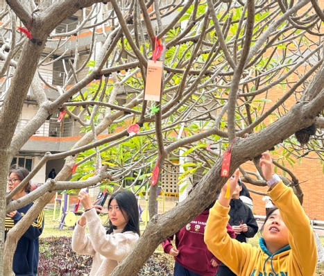餐叙结束后现场温情延续,“冬日递温情,关爱助成长”元旦送温暖活动随即展开。董艳玲副书记与辅导员黄宙老师向同学们表达了新年祝愿,并送上承载学院心意的慰问礼品。活动还设置新年愿望卡环节,同学们纷纷执笔写下心愿与祝福,挂满树枝的彩色便签成为一道温暖风景。