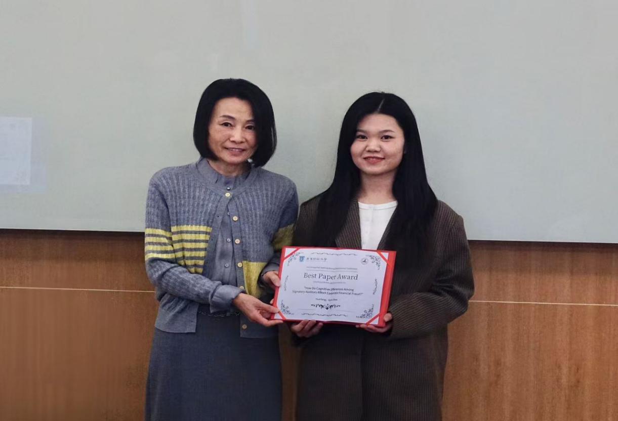 广东财经大学金融学院何恭政副教授向参会人员系统介绍了MAJ期刊的编辑团队及与会嘉宾,并主持了本次会议的最佳优秀论文颁奖环节。MAJ主编 Jie Zhou 为优秀论文作者颁奖。