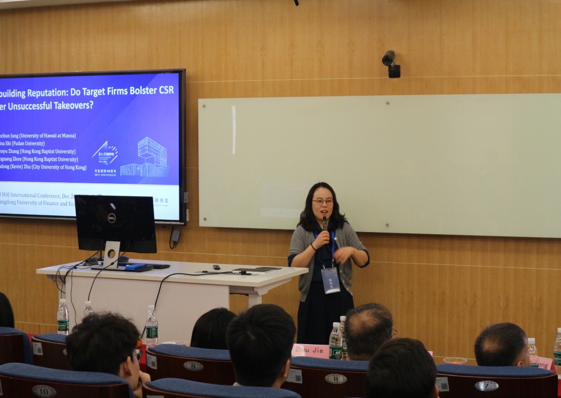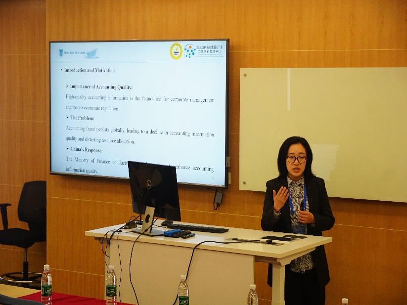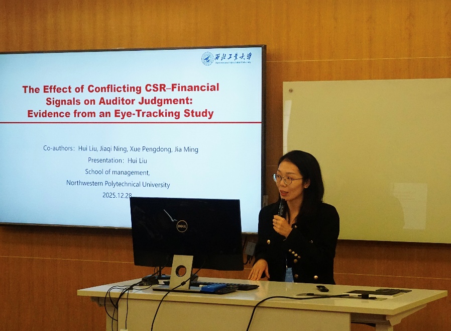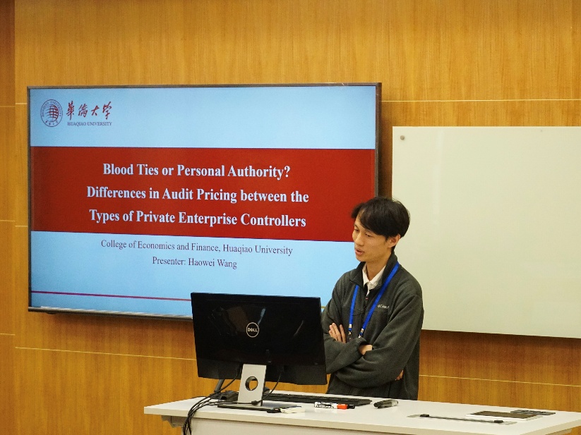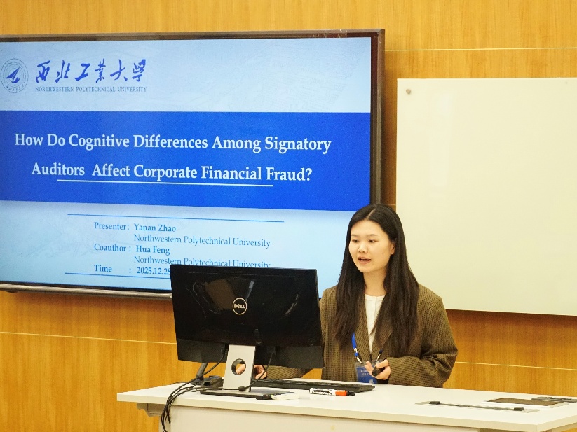 12月28日下午,会议共举行了6场平行分论坛,涵盖审计(Auditing)、会计(Accounting)、财务管理(Financial Management)三大主题。研讨以全英文形式展开,共宣讲“气候韧性城市政策与审计费用”“关键审计事项的文本特征”“共同机构所有权与非GAAP盈利披露”等主题的20篇高质量的学术论文,与会学者围绕论文内容进行了深入点评与交流。