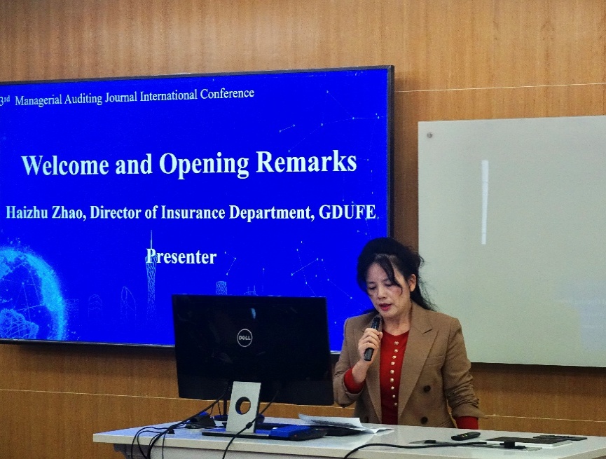 28日上午,会议开幕式在广东财经大学尚学楼307会议室举行。广东财经大学金融学院保险系主任赵海珠主持了开幕式,金融学院副院长张国俊出席开幕式并致辞。张国俊副院长对各位参会嘉宾和专家学者表示热烈欢迎,并系统介绍了金融学院在人才培养、学科建设和社会服务等方面的办学特色与成果,并指出在新形势下深入探讨管理审计的创新路径具有重要意义,真诚邀请国内外学者为广东财经大学金融学院的教科研改革发展提供鼎力支持。