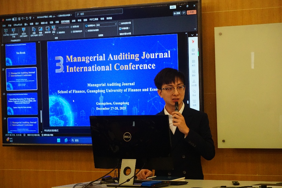 12月27日至28日,2025年第三届《管理审计期刊》国际会议(3rd Managerial Auditing Journal International Conference)在广东财经大学广州校区成功举行。本次会议由广东财经大学主办,广东财经大学金融学院承办,获得国际知名期刊《Managerial Auditing Journal》(以下简称MAJ)的大力支持。本次会议邀请到MAJ主编、美国California State University的Jie Zhou教授,美国California State University的James Gong教授,美国Bowling Green State University的Joseph Zhang教授,复旦大学施海娜副教授,西北工业大学刘慧副教授等多位国内外知名学者出席。与会的30多位学者来自深圳大学、华侨大学、杭州电子科技大学、澳门大学、澳门科技大学、Morgan State University、Keio University、Australian National University、University of Dubai等国内外知名高校。